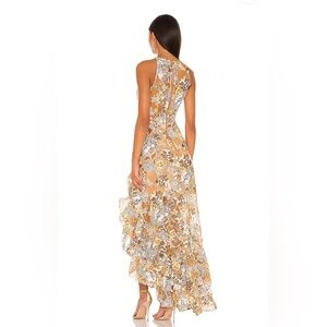 Bronx and Banco "Sicilia" floral-print gown with ruffle hem. Size XS, new with tags. Retail $450, current style, sold full price online on Neiman Marcus.
