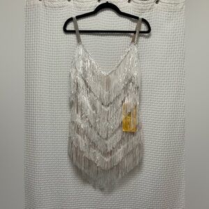 NWT Bronx and Banco Barbie Blanc Fringe V-Neck Mini - reception dress - Size S