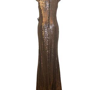 Dazzle the night away in this full-length champagne bronze sequin gorgeous gown. Designed with a flattering sweetheart neckline and wide shoulder straps, this dress hugs your figure and flares subtly at the hem for graceful movement. Fully lined for comfort and elegance, it zips in the back for a secure fit. Perfect for formal galas, black-tie weddings, or an unforgettable prom entrance.