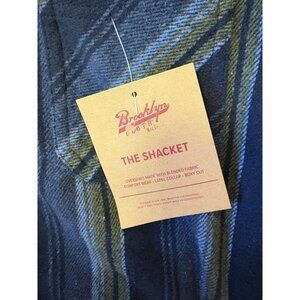 The NWT Brooklyn Cloth Hooded Shacket Baja Flannel Zip Jacket Shirt in Men's Medium is a stylish and versatile outerwear piece. Made from a cotton blend with a flannel fabric type, this mid-length jacket features a striped pattern and a zip closure. The unique shacket style offers a blend of practicality and fashion, perfect for a casual yet trendy look. With a hooded design and accents like the Brooklyn Cloth logo, this jacket is ideal for those looking to add a touch of retro flair to their wardrobe, whether it be reminiscent of the 80s or 90s.