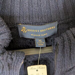 NWT Brooks Brothers Men's Merino Wool Blend Zip Up Cable Knit Sweater Navy XL