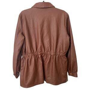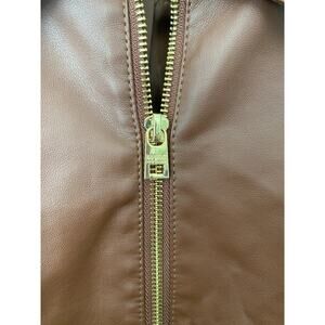 NWT Brown Faux Leather Andrew Marc New York Synched Gold Full Zip Coat/Jacket-L