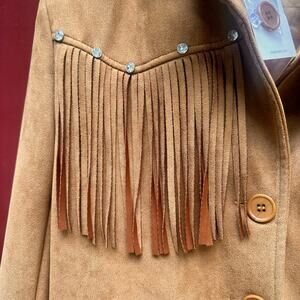 NWT Brown Faux Suede Western Fringe Boho Jacket, Lined, Studded Trim, Size XS