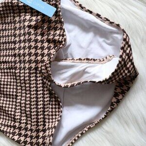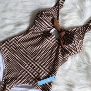 NWT Brown Houndstooth Print Plus Size One Piece Bathing Suit Size 0X Beach Pool
