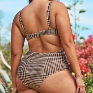 NEW Brown Houndstooth Print Plus Size One Piece Swimsuit Size 0X