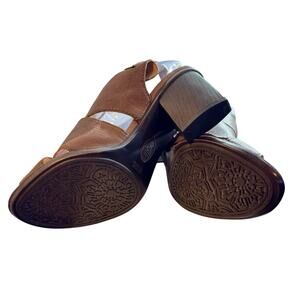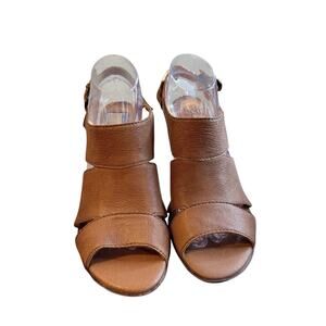This product is a stylish and versatile pair of brown Sofft leather chunky heel sandals in women's size 9.5. Natural leather lining with comfort foot bed!!! The sandals feature a strappy design with an ankle strap and adjustable buckle closure for a comfortable and secure fit. The high chunky heel adds a touch of elegance, making them perfect for various occasions such as weddings, parties, or even formal events. The bohemian theme and vintage style make these sandals a fashionable choice for the summer, fall, or spring seasons. Made with quality leather materials, these sandals offer both comfort and durability for long-lasting wear.