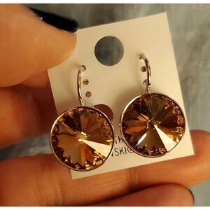 NWT! Brown Swarovski Element Round Earrings Wedding. Classy. Leverback Work