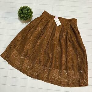 This skirt is new with tags! Long Modest knee length. Lining is shorter as pictured. Brown tan lace. Fit and flare style. Women’s size medium. 2.5.24 KK