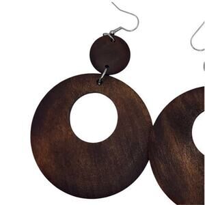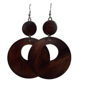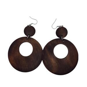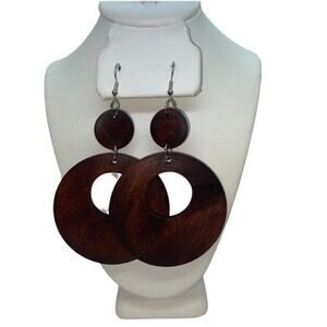NWT Brown Wood Circle Cut-Out Dangle Statement Earrings