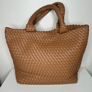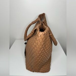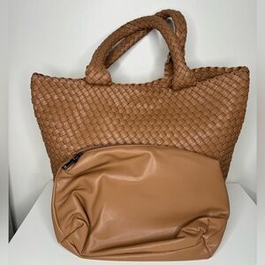 NWT Brown Woven Vegan Leather Basket Bag with Purse Insert