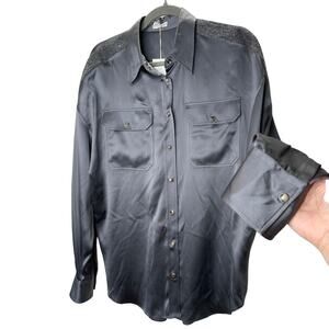 NWT Brunello Cucinelli Lead Gray Silk Beaded Fuzzy Shoulders Snap Shirt XL