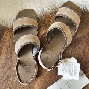 NWT!! Brunello Cucinelli Monili/Beaded Suede Sling Back Flat Sandals 7.5