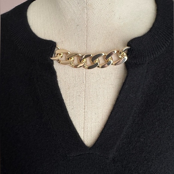 NWT Bruno Magli Chain Trim Cashmere Sweater in Black