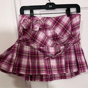 NWT - Buckle Accented Purple Plaid Pleated Miniskirt w Shorts - L