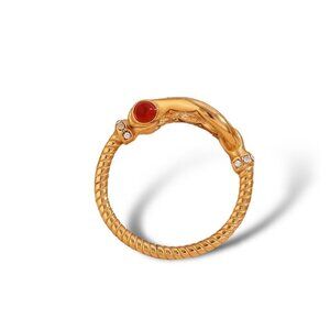 NWT Buckle Ring Sz.8 18K Gold Plated Red Zircon CZ Detail Boho Western