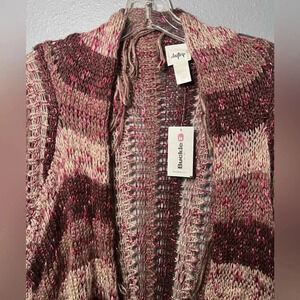 NWT Buckle Women's Sz M Daytrip Open Fringed Cardigan Sweater Wine/Beige Striped
