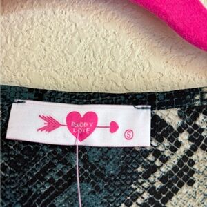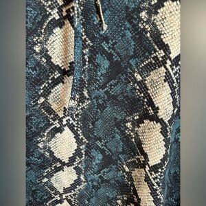 NWT Buddy Love Tie Front Split Bell Sleeve Blue and Beige Snake Print Blouse S