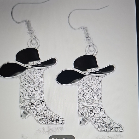 NWT Buer Elegant Boot & Hat Rhinestone Cowboy Earrings Silver & Black 2" X 1"