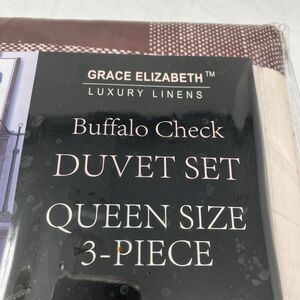 NWT Buffalo Check Duvet Set Queen Size 3 pc Brown Beige Grace Elizabeth