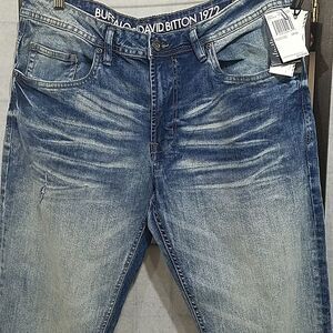 NWT Buffalo DAVID BITTON Mens Evan-X Slim Straight Stretch Jeans - Ripped, 34x32