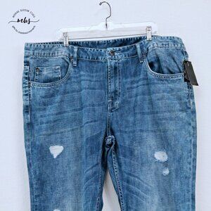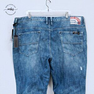 NWT Buffalo David Bitton Basic Slim Stright Distredded Jeans Blue Men 46x32
