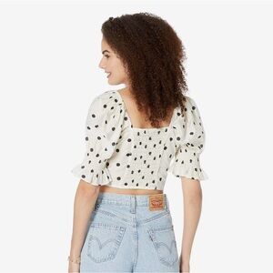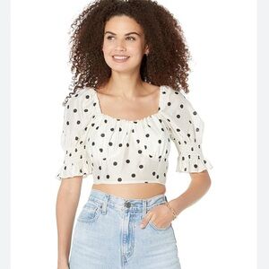 NWT Buffalo David Bitton Stacie Sweetheart Smocked Polka Dot Cropped Top Size Large. Material is 97% Poly 3% Elastane.