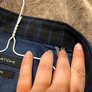 NWT Bugatchi Shaped Fit Blue Checkered Pattern Button Down Shirt- Size L…