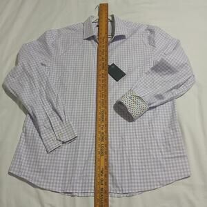 NWT Bugatchi XL men's Shaped Fit lavender check 100% cotton flip cuff long-slv