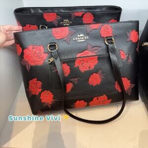 NWT Bundle COACH Station Tote Bag Floral CCE23 Leather & CAX00 Swagger Chain
