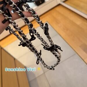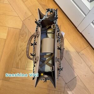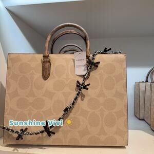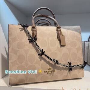 NWT Bundle Coach Chain Strap Bows Silver/Black cy260 & CY677 Large Maggie Sand