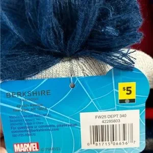 1x Marvel Spider-Man Beanie: Multi-stripe design (navy, red, grey, white) featuring a "chibi-style" Spidey mask on a navy blue cuff.