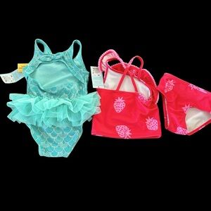 NWT Bundle of 2 Cat & Jack Baby Girls 18 months Swimsuits Strawberry Mermaid New