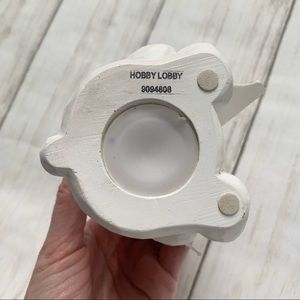 Isn’t this just so sweet?! Right at 4” tall this little bank is just perfect for a baby’s room or a little girl’s dresser decor. Excellent new condition.
