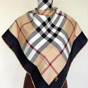 Authentic Burberry Beige Check Black Border Silk Scarf