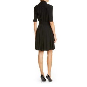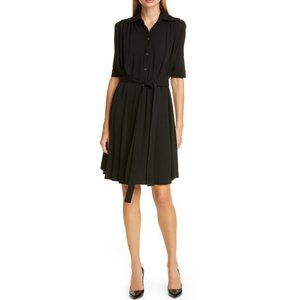 An instant wardrobe go-to, this snap-front shirtdress is fashioned from midweight jersey, meaning it will be comfortable throughout the seasons. A gathered back yoke relaxes the fit, but the belted waist keeps it flattering.
