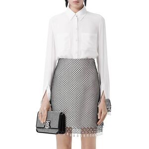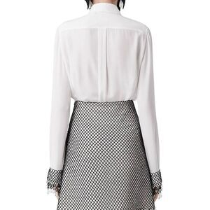 NWT Burberry Button Front Crystal Fringe Cuffs Long Sleeve Silk Blouse Ivory Size 6