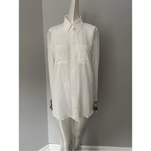 NWT Burberry Button Front Crystal Fringe Cuff Long Sleeve Silk Blouse Ivory Sz 6