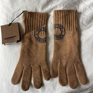 NWT Burberry Cashmere blend gloves with logo in camel beige color