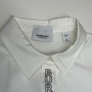 NWT | Burberry | Celia Logo Placket Peplum Top | White | Girls 8Y US