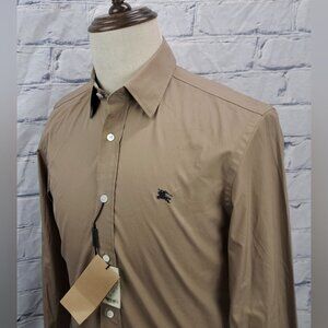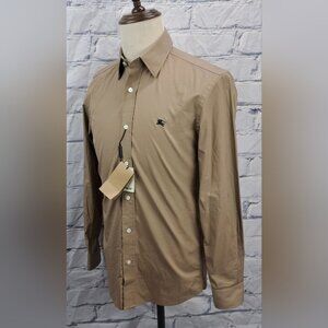 NWT Burberry Men's Cambridge Button Down Shirt Equestrian Knight Dark Honey XS