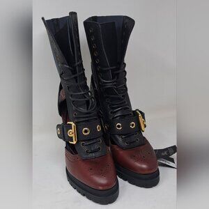 NWT Burberry Python Leather Biker Boots Buckle Chunky Heel 41 EU 11 US
