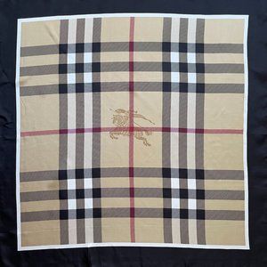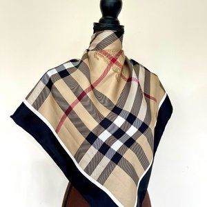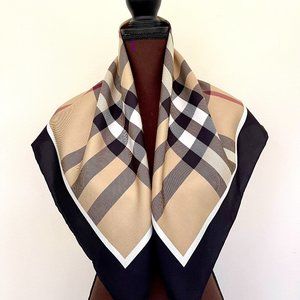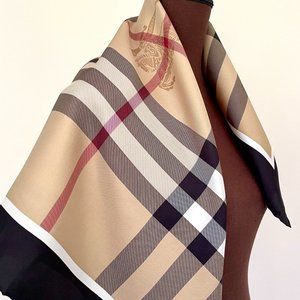 Authentic Burberry Beige Check Black Border Silk Scarf