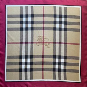 Authentic Burberry Beige Check Red Border Silk Scarf