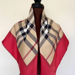 NWT Burberry Scarf House Check Beige Red Border Silk Wrap