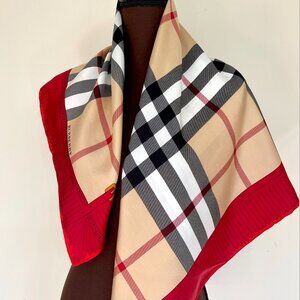 Authentic Burberry Beige Check Red Border Silk Scarf