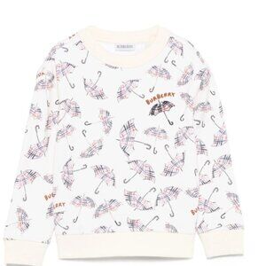 NWT Burberry White Cotton Sweatshirt with Umbrella Print