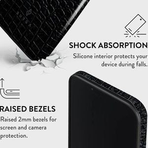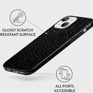 * The case is not textured-it is a printed pattern * Our Reaper's Touch iPhone 13 phone case cover features a classic snakeskin design in dark black. The dangerous animal print will add confidence and a touch of luxury to your style while transforming your phone into a fashion accessory.