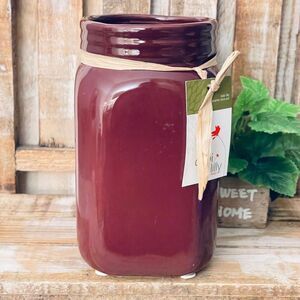 NWT Burgundy Bloom Extra Large Fresh Ceramic Mason Jar Decor utensil Holder