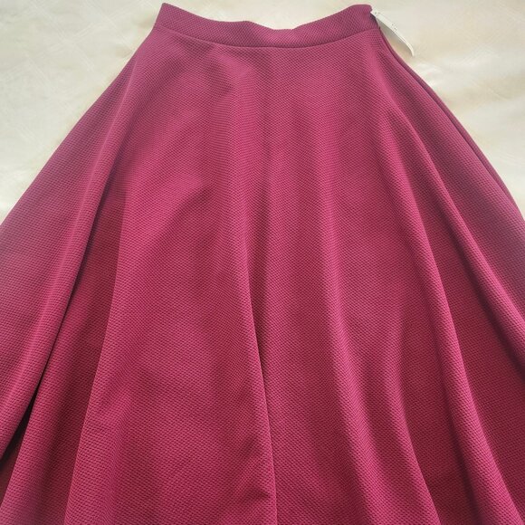 NWT SHE burgundy circle skirt, size XS. Knee-length, waffle print. Back zipper closure 92% polyester, 8% spandex