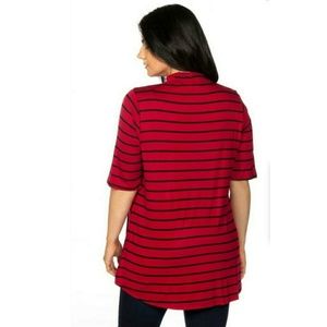 NWT Burgundy Mock Neck Choker Keyhole Stripe Top